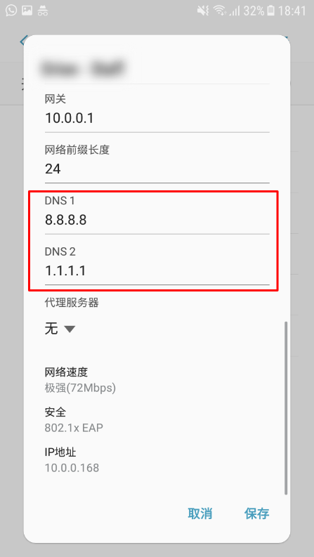 您必须连按Wi-Fi网络,才能可以更改设备DNS设设置!