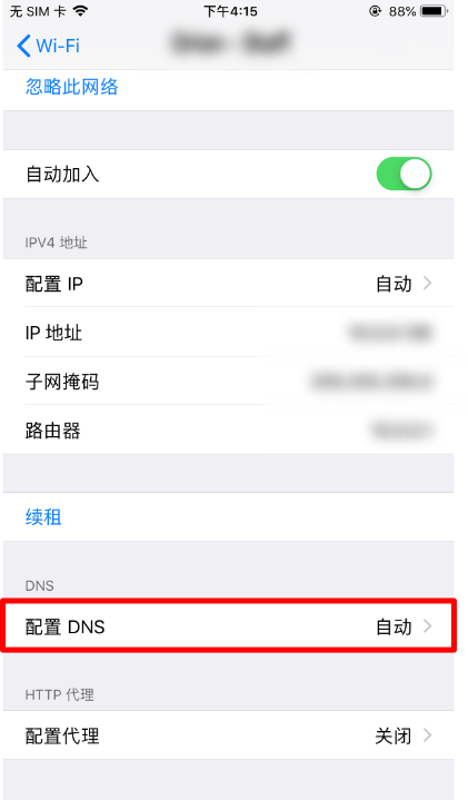 在该Wi-Fi网络详情部分向下滚动,找到【DNS】选项部分。