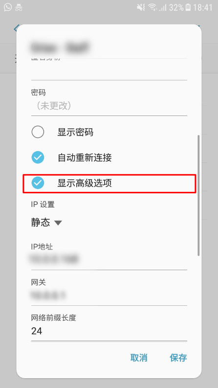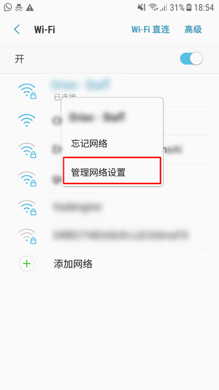 在WI-Fi列表中,选择以及连接的Wi-Fi名称,长按之后在弹出来的提示选择"修改网络配置"